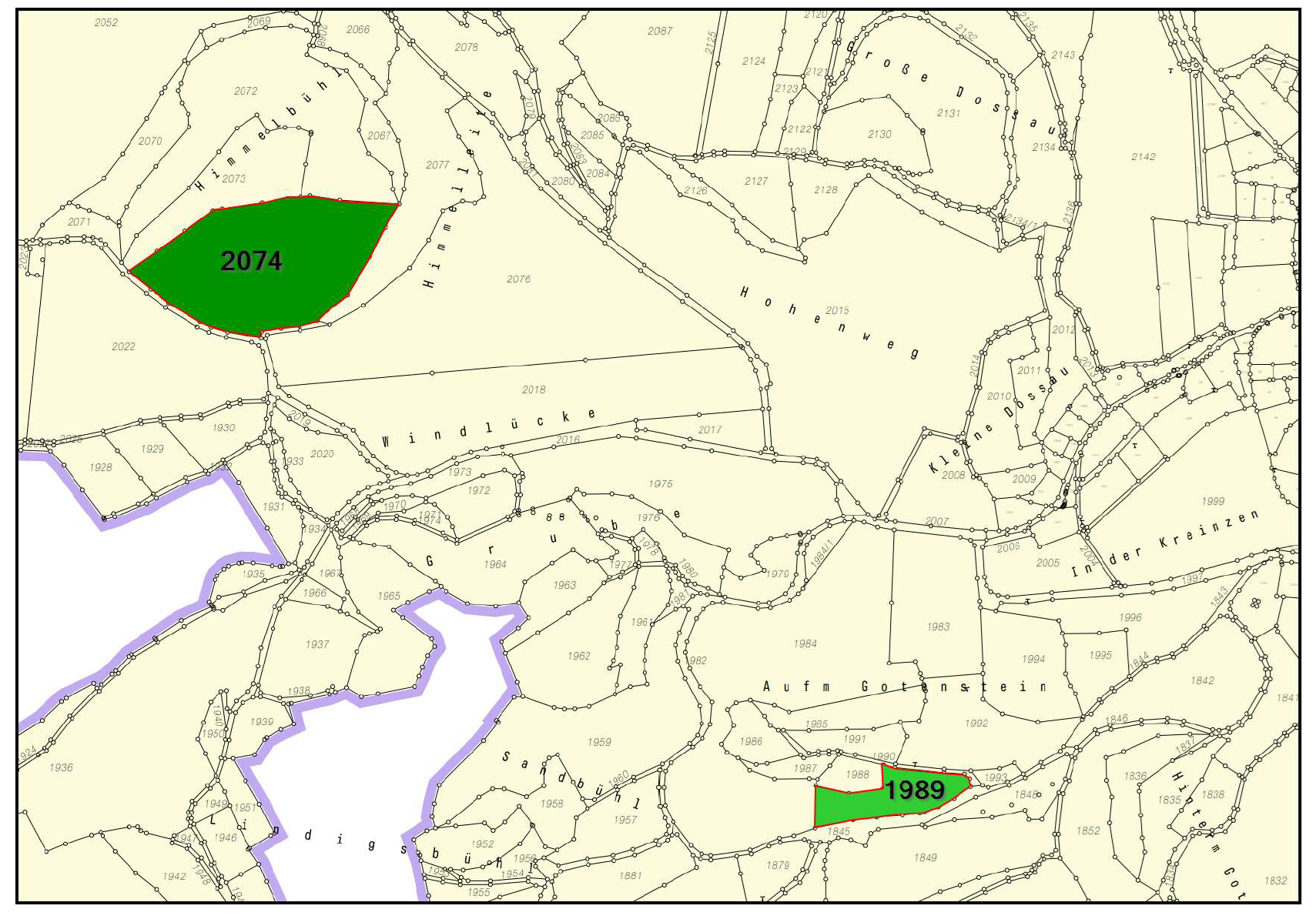 Es wird empfohlen, sich vor einer Angebotsabgabe die Flächen vor Ort anzuschauen (siehe hierzu nachfolgender Kartenauszug).
